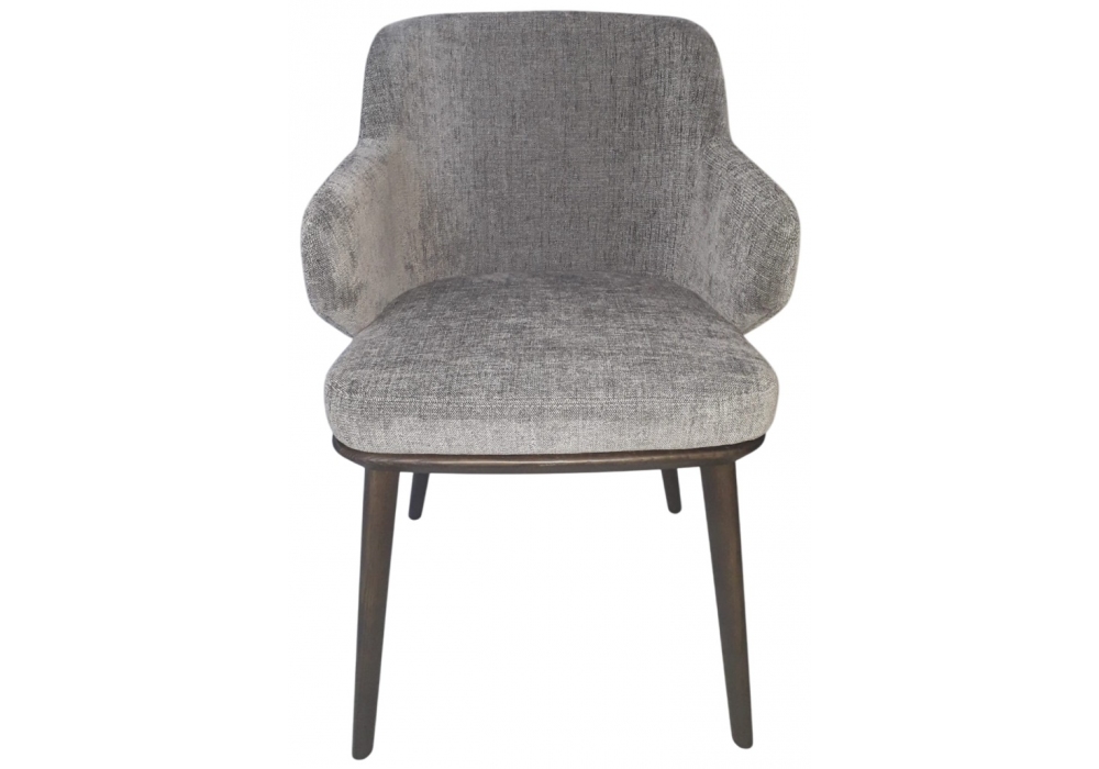Foyer von Edi & Paolo Ciani für Calligaris entworfen, ist ein Armstuhl mit gepolsterter, geschwungener Rückenlehne, Sitzstruktur mit elastischem Gurt und konischen Holzbeinen. Mit Stoff bezogen.