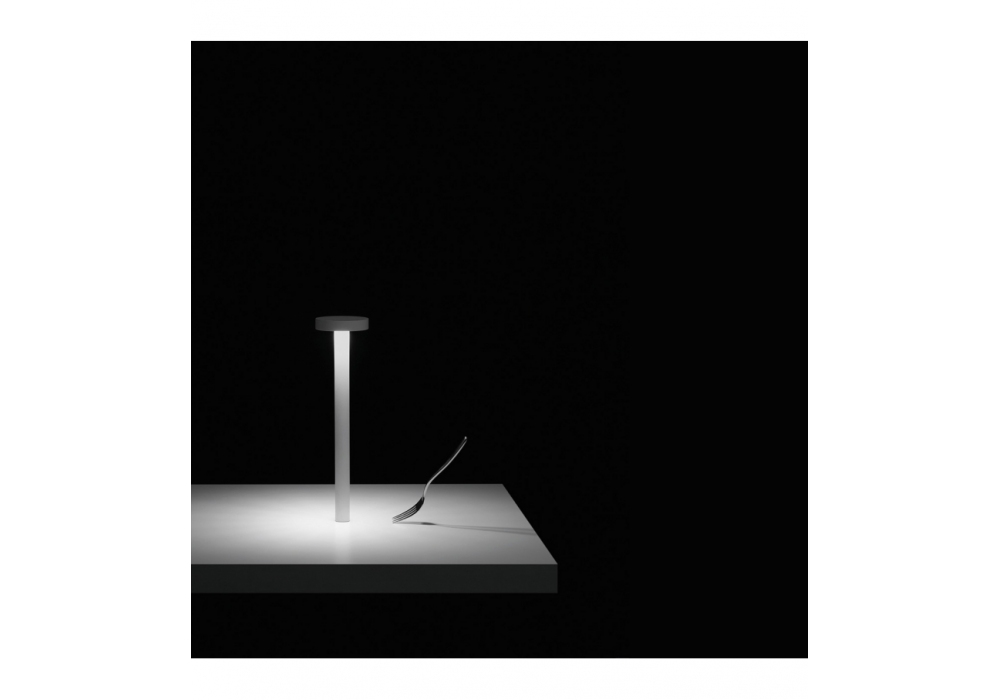 Tetatet Touch von Davide Groppi entworfen, ist eine LED-Tischleuchte mit Magnetfuß aus Metall und Methacrylat. On/Off-Schalter mit Touch-Technologie - Akkulaufzeit 12 Stunden.