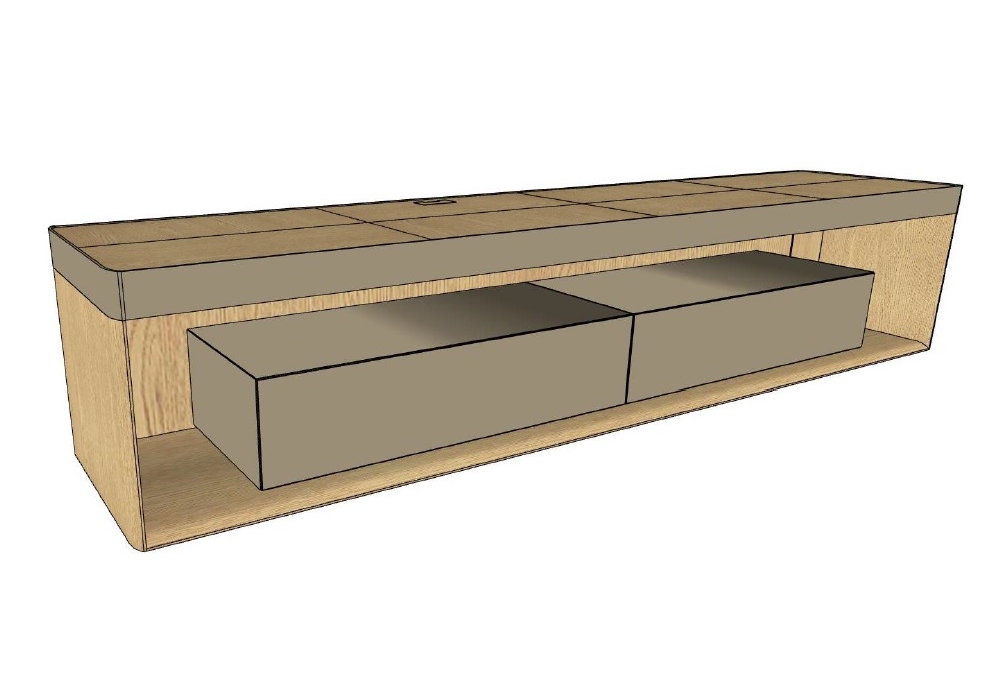 Living Box von Vincent Van Duysen für Molteni & C entworfen, ist ein eigenständiges Sideboard, das in jedem Raum des Hauses verwendet werden kann, aber hauptsächlich für die Einrichtung des Wohnbereichs geeignet ist. Hergestellt mit Struktur, Platte und Innenschubladen aus Sunrise-Eiche, während die Innenkommode und das Profil der Platte aus lackiertem Iris-Metall bestehen.