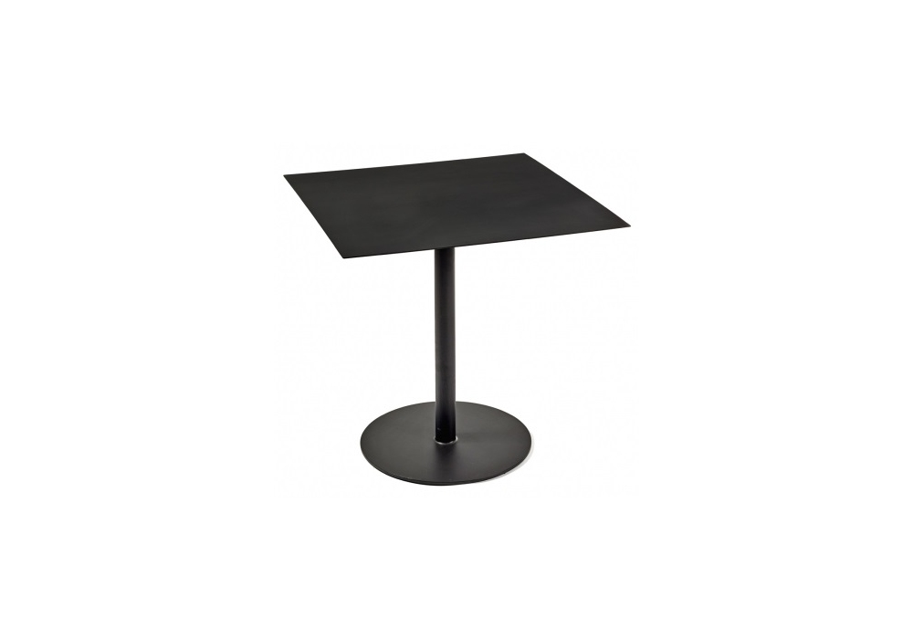 Bistro von Bea Mombaers für Serax entworfen, ist ein quadratischer Bartisch mit Gestell und Platte aus schwarzem Metall.