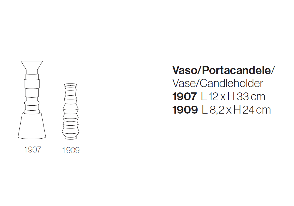 | Abmessungen | Ø 12 x H 33 cm (1907); Ø 8,2 x H 24 cm (1909). |