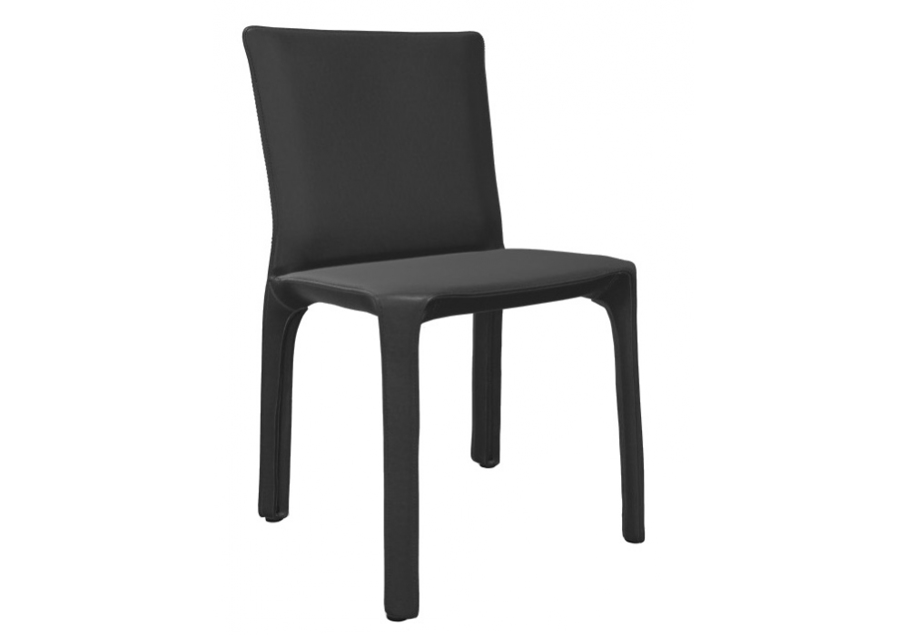 412 Cab Pro von Mario Bellini für Cassina entworfen, ist ein Stuhl mit Stahlstruktur und schwarzem Kernlederbezug.