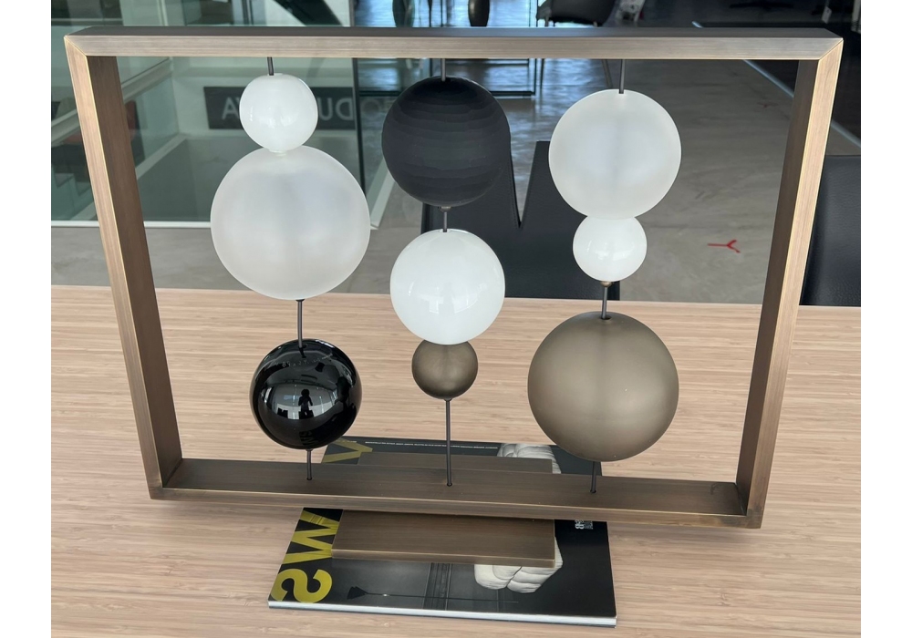 Circo di Lune von Monica Guggisberg und Philip Baldwin für Venini entworfen, ist eine Skulptur aus mundgeblasenem Glas und geschlagenem Metall. Limitierte Auflage in 99 Werken pro Farbe.