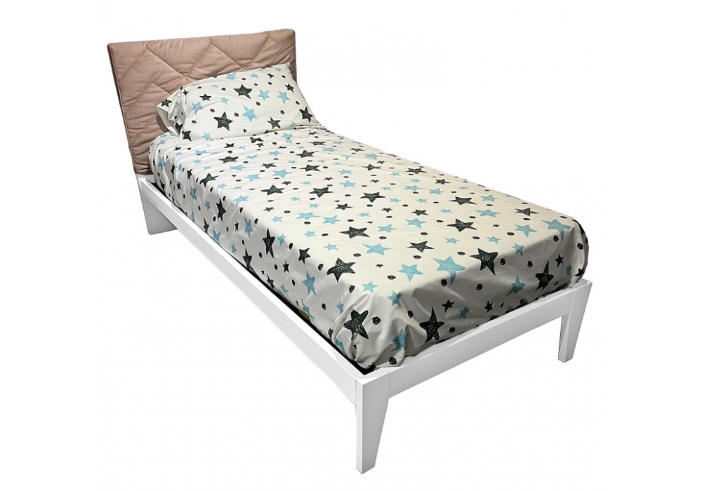 Edgar/Kite von Doimo CityLine entworfen, ist ein Bett mit einem weißen Bettrahmen und Kopfteil. Kopfteilkappe aus Stoff Cambridge A25.