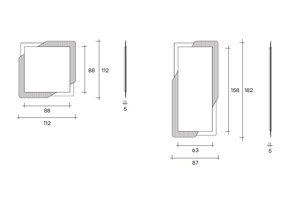 | Abmessungen | 112 x 5 x H 112 cm; 87 x 5 x H 182 cm. |