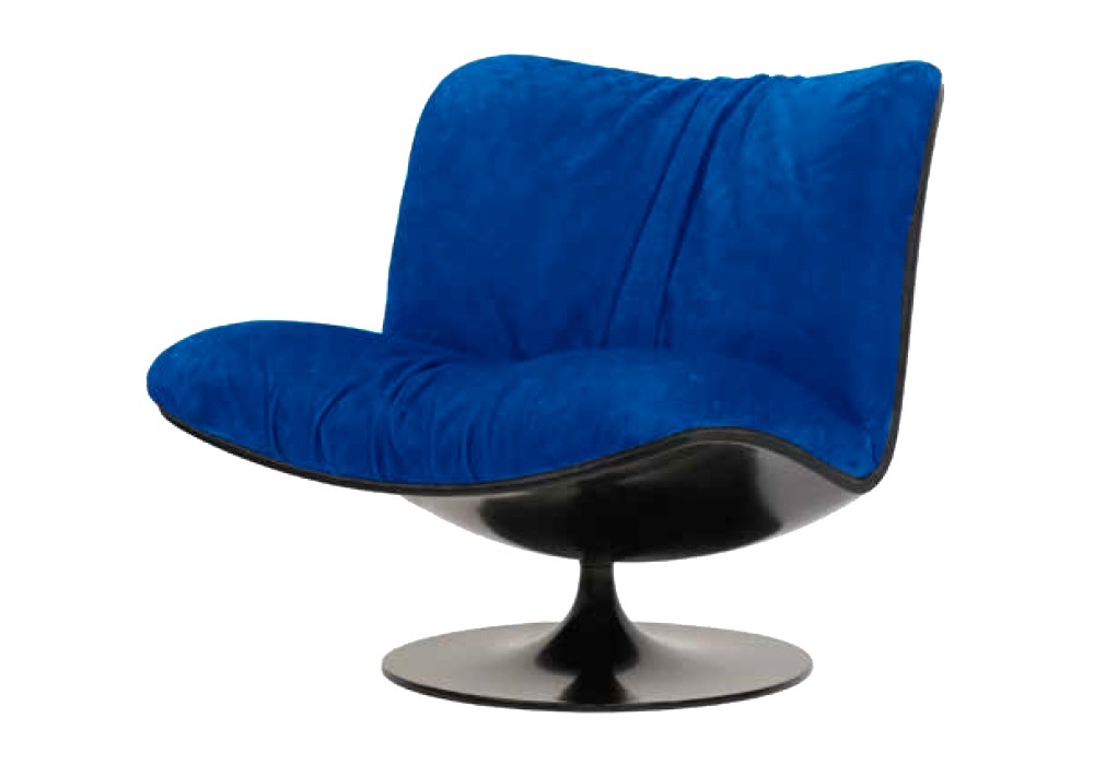 Marilyn von Draga & Aurel für Baxter entworfen, ist ein drehbarer Sessel mit einem mattschwarz lackierten, starren Gestell. Matte schwarz lackierte drehbare Metallbasis. Sitz und Rückenlehne aus Polyurethanschaum mit differenzierter Dichte und Acrylfaserabdeckung, bedeckt mit gewaschener und sterilisierter Gänsedaunen. Dekorative Paspelierung im gleichen Lederton von Innenlehne und Sitz.