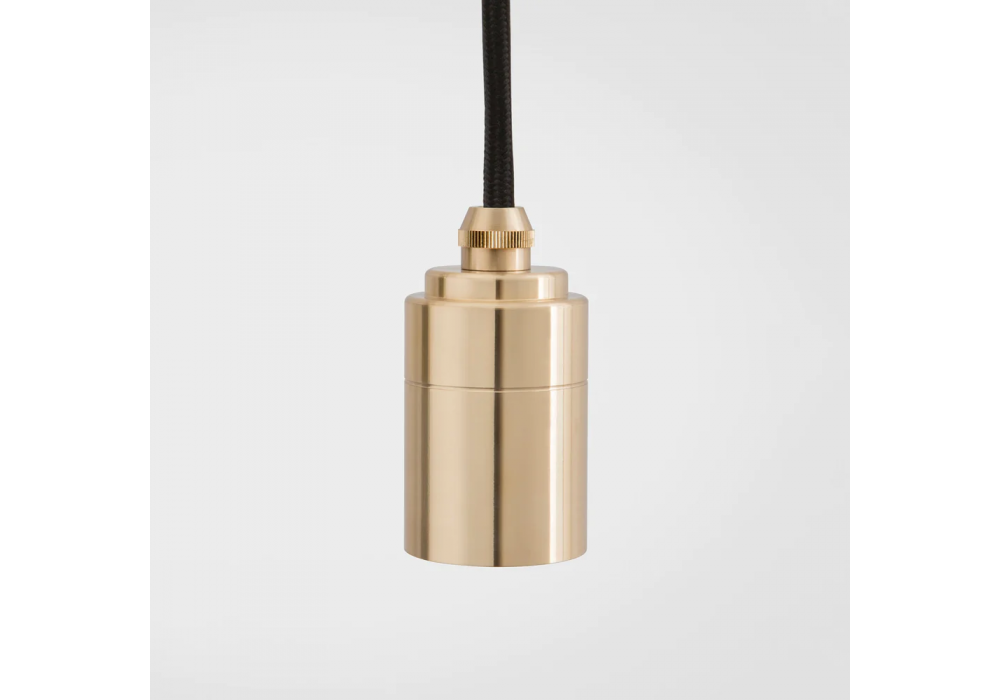 Plug-In von Tala entworfen, ist eine Hängeleuchte mit Messingoberfläche und schwarzem Textilkabel.