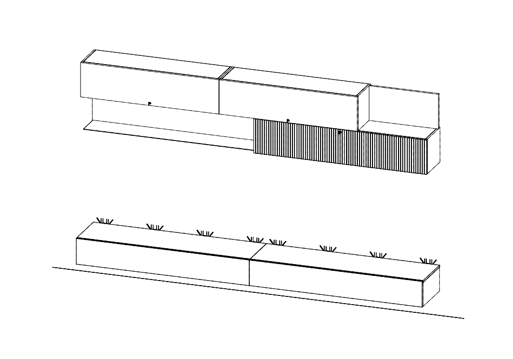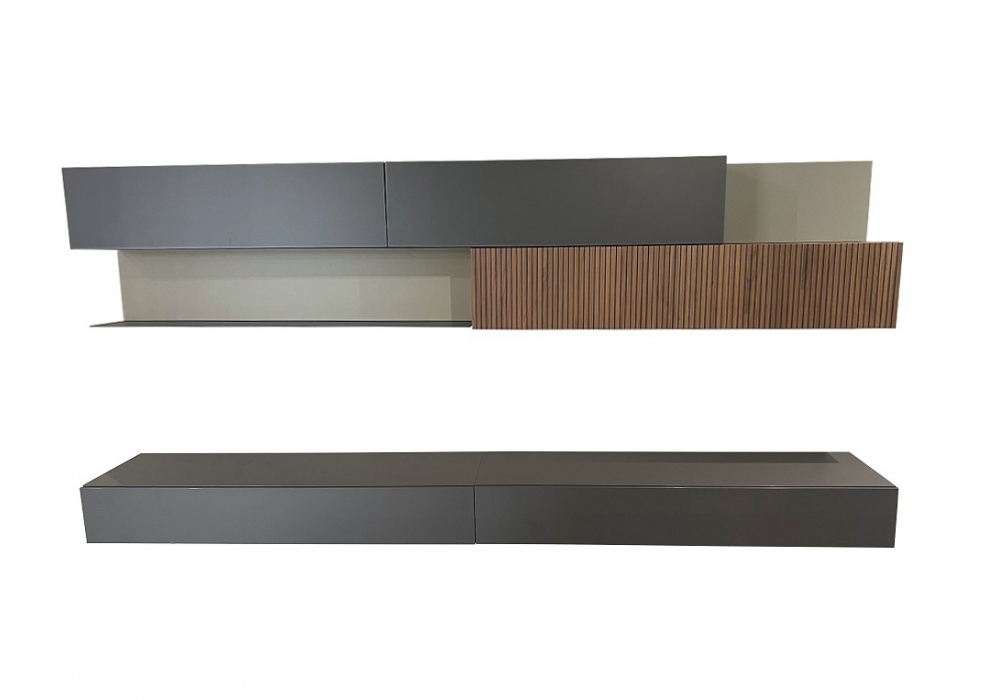 Day 12 von Alf DaFrè entworfen, ist eine ausgestattete Wand, die sich durch einen Korpus und Fronten aus glattem, melaminharzbeschichtetem Blei mit Details aus natürlichem Walnuss-Melamin auszeichnet. Die Oberfläche der Oberfläche ist glatt und widerstandsfähig, während das Regal aus glattem, veredeltem Platin gefertigt ist. Die Push-Pull-Griffe im C15-Stil sind seitlich angebracht, um eine klare Ästhetik zu gewährleisten. Im Inneren garantiert die glatte Platinrückseite mit Melaminbeschichtung Stabilität und Gleichmäßigkeit.