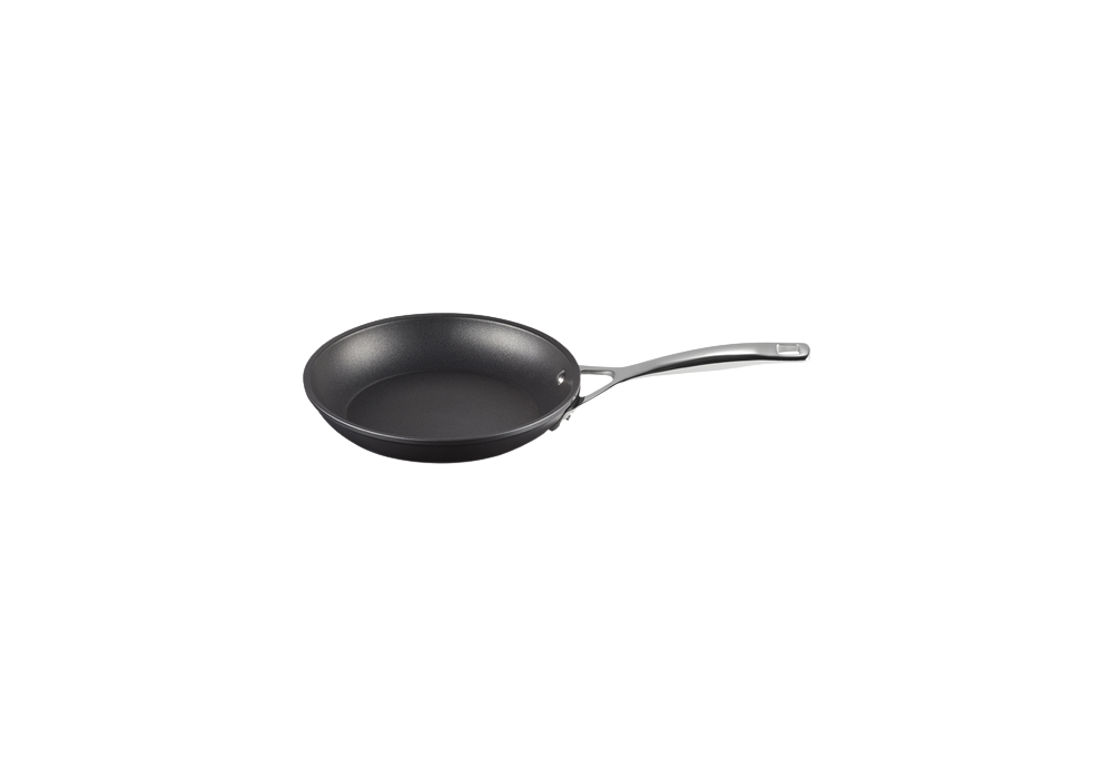 Padella Bassa Manico Lungo 26 von Le Creuset entworfene, ist eine niedrige Pfanne aus Antihaft-Aluminium mit langem Griff.