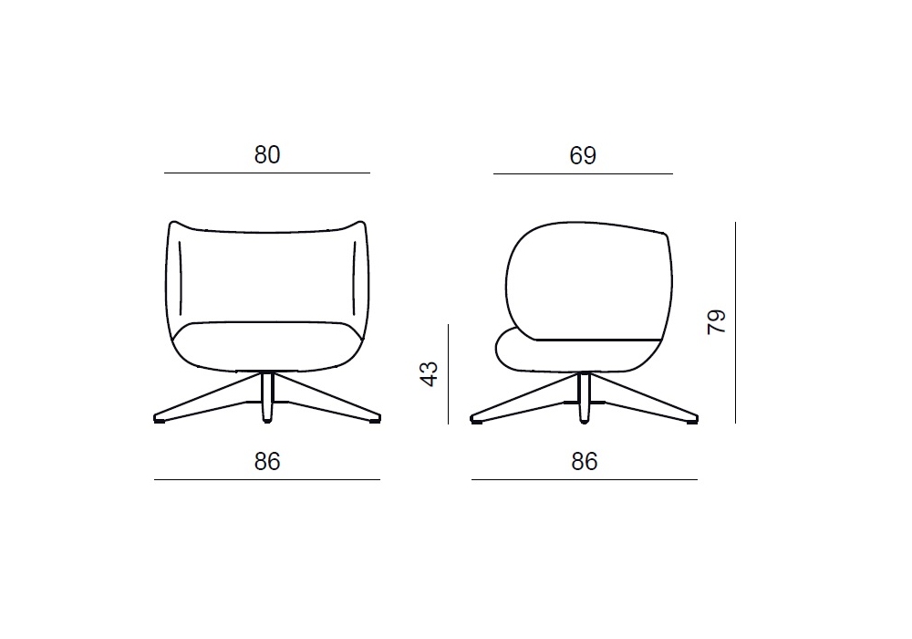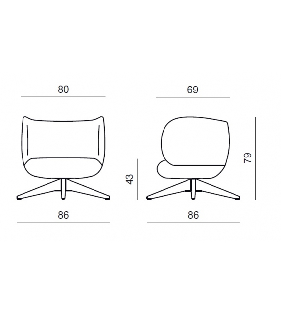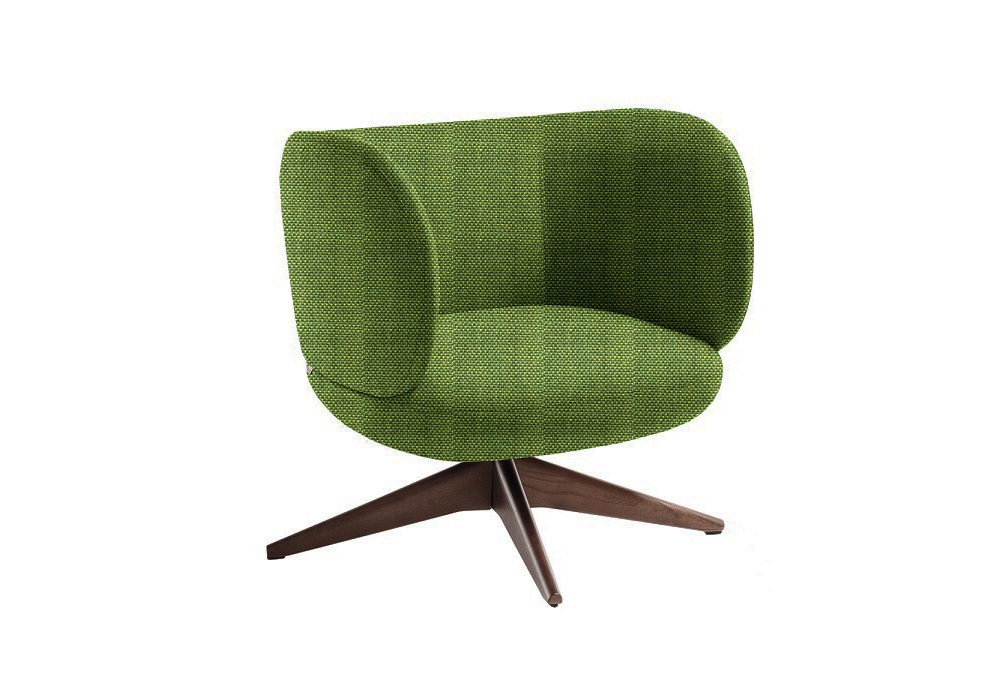 Beth von Alessandro Crosera & Elena Pistolato für Milani entworfen, ist ein Loungesessel mit feuerfester Polsterung, hergestellt mit einem 4-Speichen-Gestell aus tabakfarbenem Holz und Stoffbezug.