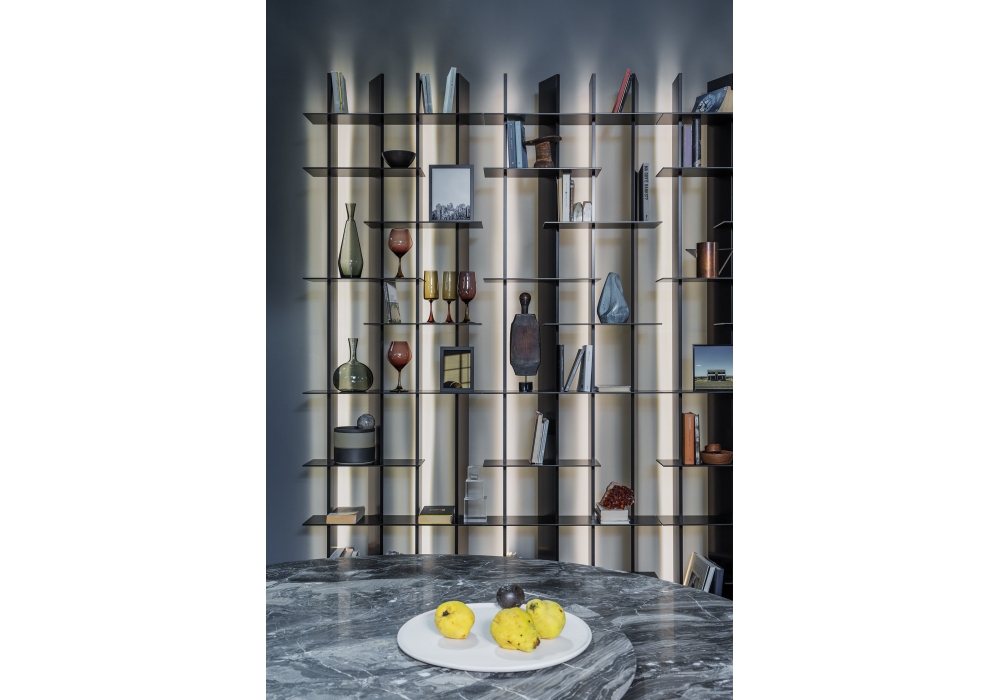 CCLight von Carlo Colombo für Natevo entworfen, ist ein Bücherregal mit LED-Licht aus Aluminiumprofil. Das Einschalten erfolgt über einen Ein-/Aus-Fußschalter. Verfügbar in anodischer Bronzeausführung.