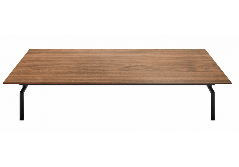 Sumo von Piero Lissoni für Living Divani entworfen, ist ein Couchtisch mit Holzplatte und "Gunmetal"-grau lackierter Stahlstruktur.