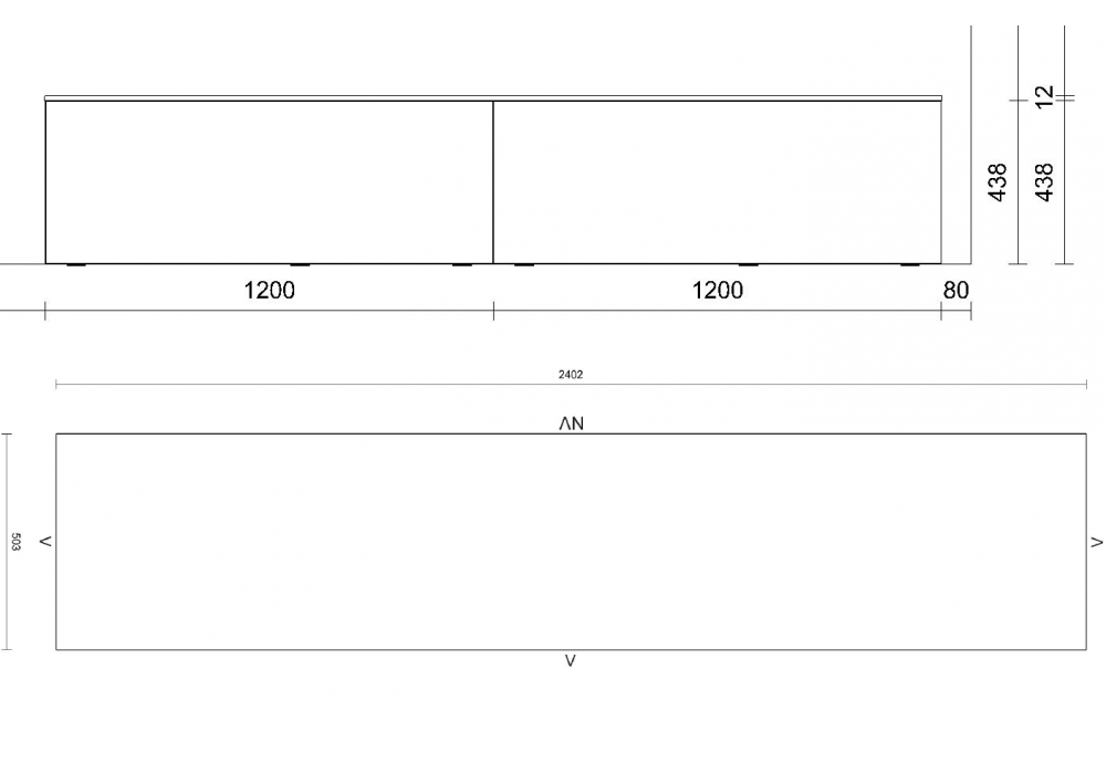 MH6 von Modulnova entworfen, ist ein Sideboard mit Schubladen mit Push-Open-Öffnungen, Oberfläche aus gebürsteter Esche-Eiche. Innenausstattung aus strukturiertem grauem Melamin.