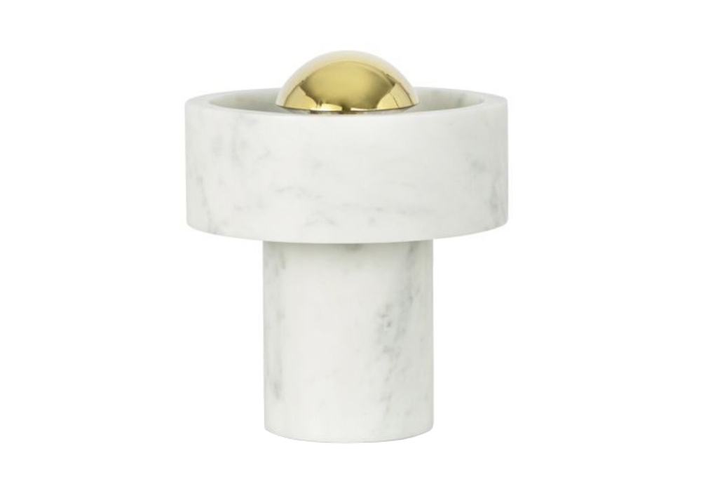 Stone Portable von Tom Dixon entworfen, ist eine Tischleuchte aus Marmor und Messing mit integriertem Touch-Dimmer. Wiederaufladbar mit einer Akkulaufzeit von 9 Stunden.