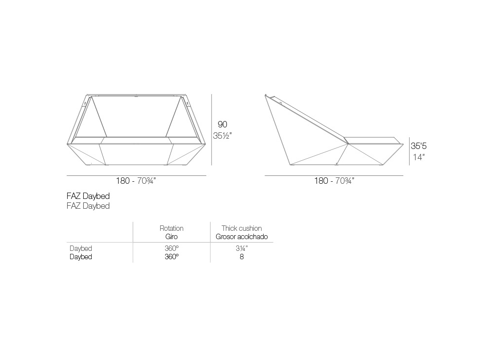 Faz von Ramón Esteve für Vondom entworfen, ist eine Daybed aus Polyethylenharz durch Rotationsformen und Stoffbezug. 100 % recycelbar. Geeignet für den Innen- und Außenbereich.