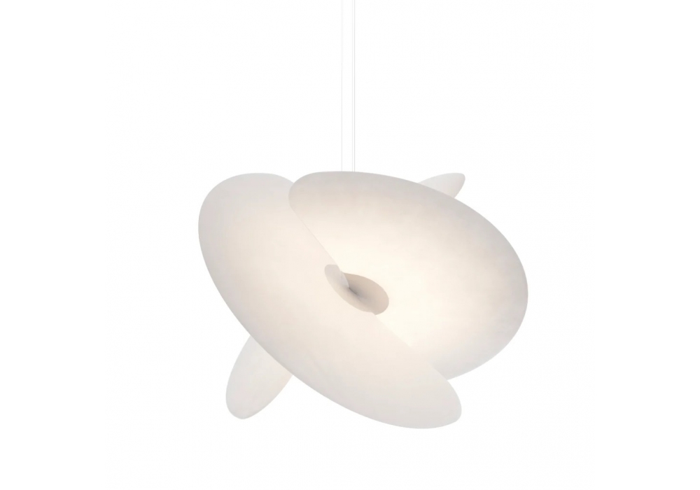 Levante von Marco Spatti für Luceplan entworfen, ist eine Hängeleuchte mit Struktur aus mattweißem Aluminium und Diffusor aus PET.