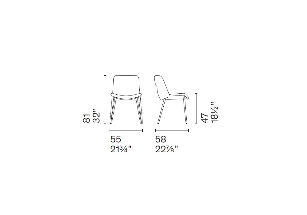Onda von AIR Design für Calligaris entworfen, ist ein Stuhl mit Metallrahmen und Stoffpolsterung.