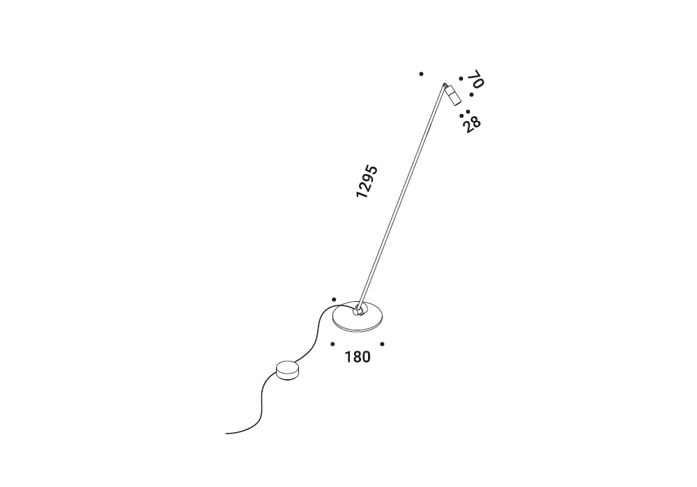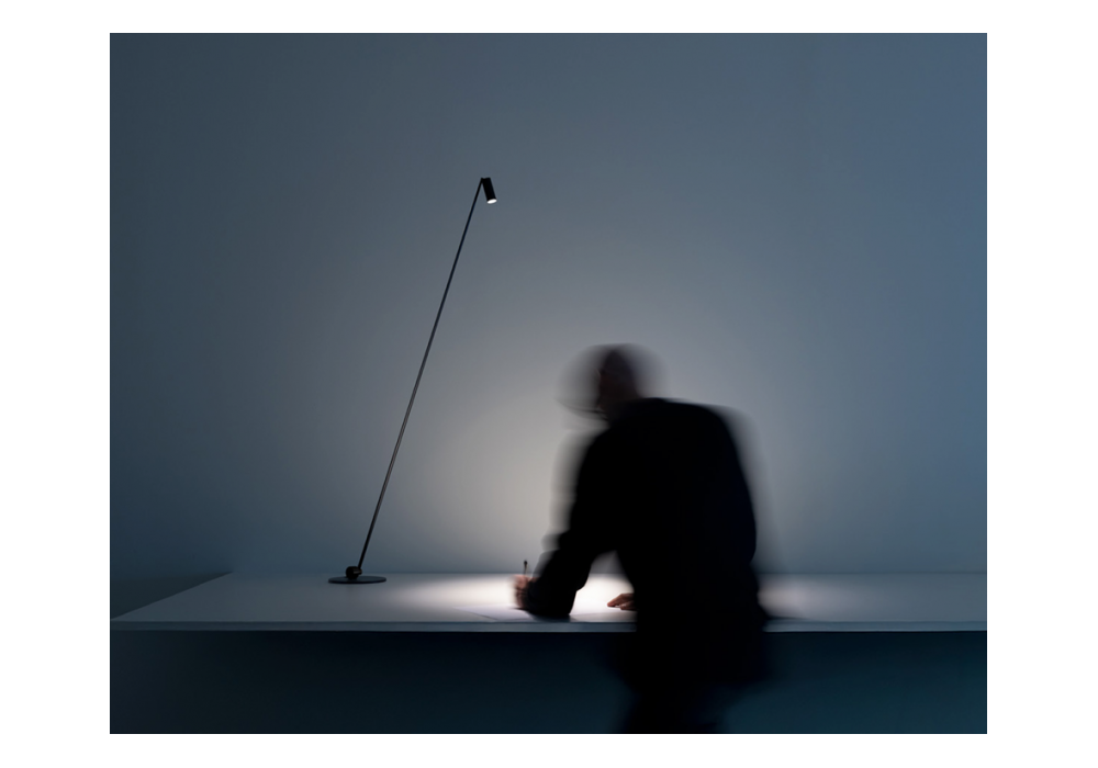Mia von Davide Groppi entworfen, ist eine Steh-/Tischleuchte mit schwenkbarem Schaft und kleinem, ausrichtbarem Kopf. Dimmer und Treiber inklusive.