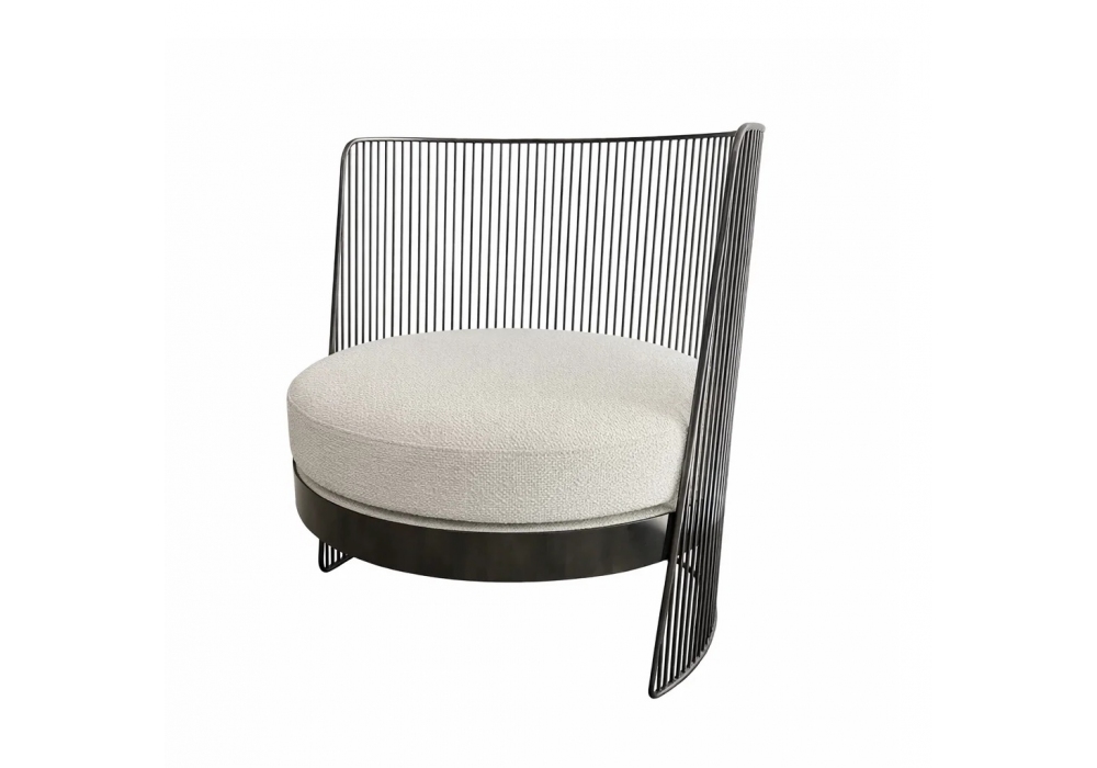 Joelle von Carlo Colombo für Antonio Lupi entworfen, ist ein Sessel mit einem runden Metallring und Stoffpolsterung.