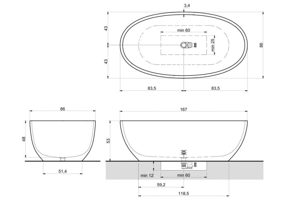 Reflex von Antonio Lupi ist eine ovale Cristalmood Badewanne mit mattschwarzem Ablauf mit Klick-Klack-Druckstopfen, Siphon und flexiblem Schlauch. Ein bodenstehender Wanneneinlauf aus matt lackiertem Edelstahl AISI 316/L und ein optischer Präsentationsständer sind im Lieferumfang enthalten.