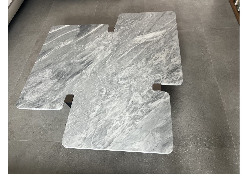 Jacob von Rodolfo Dordoni für Minotti entworfen, ist ein Couchtisch mit Beinen aus gebürsteter massiver Eiche und einer Tischplatte aus Bardiglio Nuvolato Marmor.
