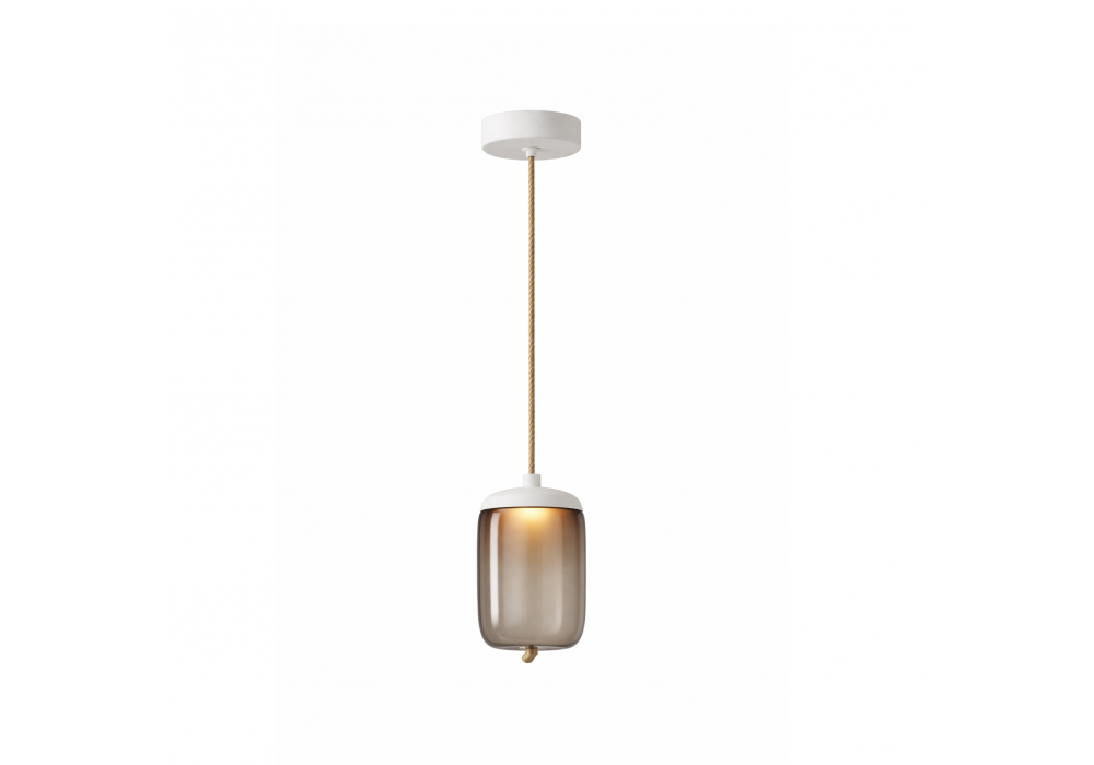 Knot Small von Chiaramonte Marin für Brokis entworfen, ist eine Hängeleuchte mit Metallrahmen und Deckenrosette sowie einem Aufhängungskabel aus Naturseil. Der Diffusor ist aus mundgeblasenem Glas mit matter Innenfläche gefertigt. Als Lichtquelle dient eine dimmbare 1-10V-LED.