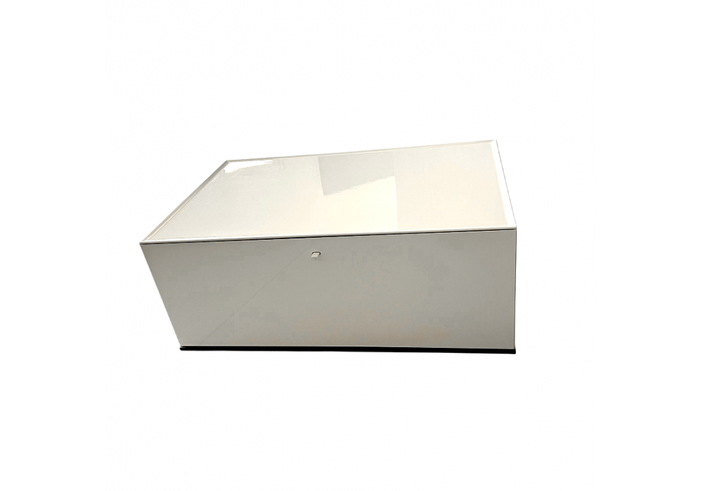 Schlichte Aufbewahrungsmöbel mit glänzend weißer Lackierung, erhältlich mit einer oder zwei Push-Pull-Schubladen. Vielseitige und funktionale Lösungen, ideal für moderne Räume.
