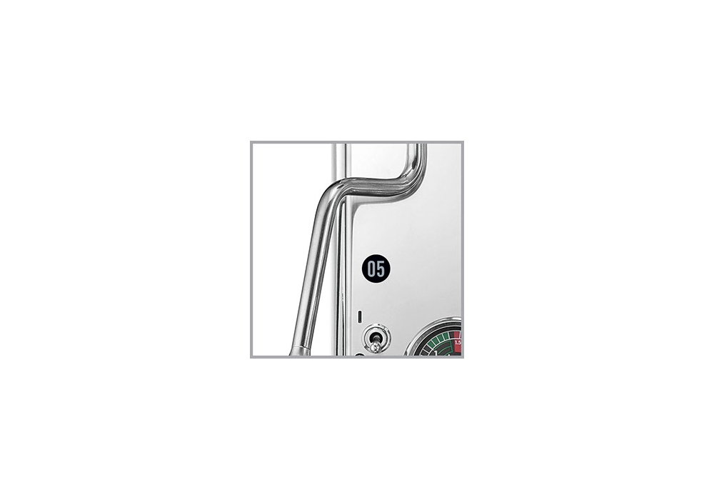 Mozzafiato Cronometro R von Rocket Espresso entworfen, ist eine Kaffeemaschine mit digitalem Timer, PID-Temperaturregelung, isolierten Boilern und 9-mm-Rocket-Espresso-Boilerendplatten.