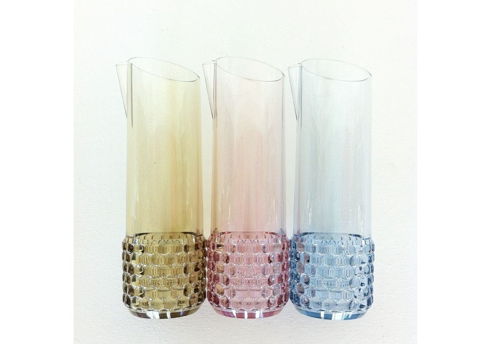 Jellies Family von Patricia Urquiola für Kartell entworfen, ist ein Karaffe aus transparentem oder durchgefärbtem thermoplastischem Technopolymer.