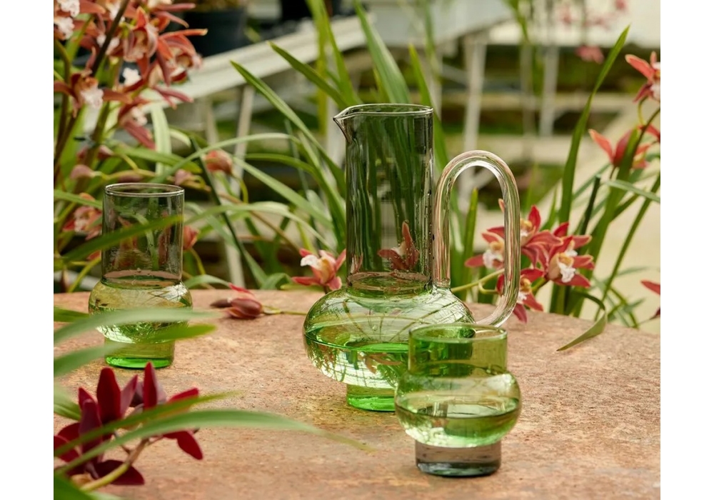Bump Jug Green von Tom Dixon entworfen, ist ein Krug aus Borosilikat.