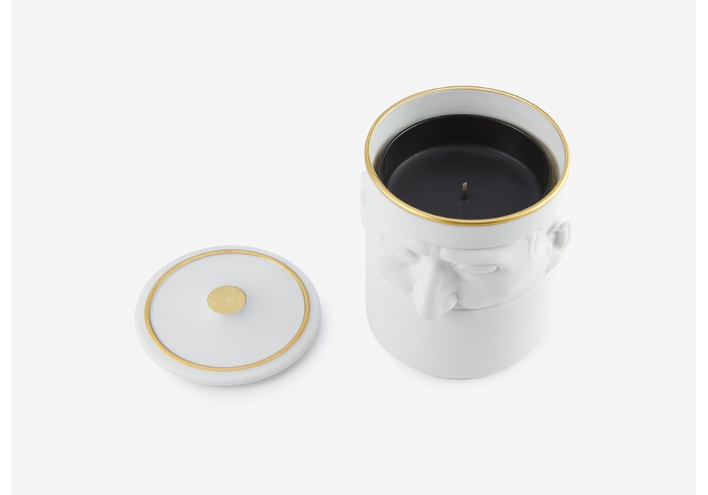 LCDC Il Seguace Pure White von Luca Nichetto für Ginori 1735 entworfen, ist ein nachfüllbarer Kerzenhalter aus Porzellan mit einem Set von 190 g Black Stone Duftkerzen mit Deckel.