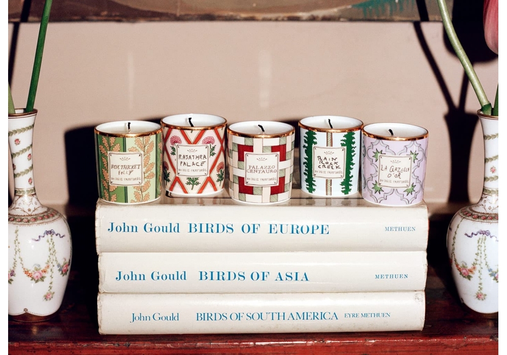 Profumi Luchino von Luke Edward Hall für Ginori 1735 entworfen, ist ein Kerzenset für den Innenbereich mit einem rein dekorierten Porzellankörper.
