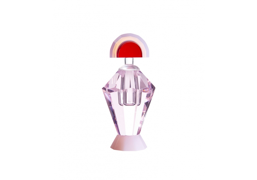 Belleville hergestellt und signiert von Reflections Copenhagen, ist ein Parfümflakon aus Kristall, der aus verschiedenen geometrischen Elementen besteht, die von Hand in den Farben Rosa, Rot, Rosé und Transparent geschnitzt und veredelt wurden. Belleville ist innen flüssigkeitsfrei.