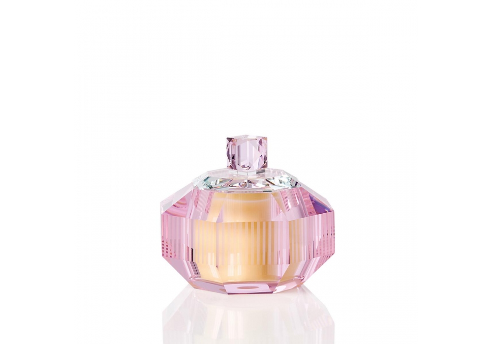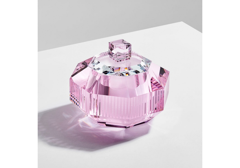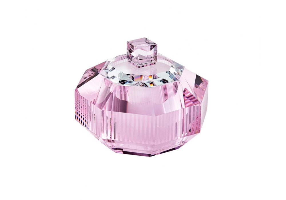 Clara hergestellt und signiert von Reflections Copenhagen, ist eine Duftkerze mit einer transparenten und rosafarbenen Kristallstruktur.