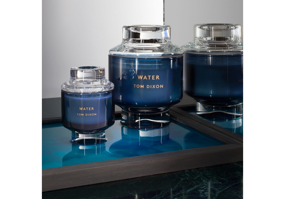 Elements Water von Tom Dixon entworfen, ist eine Duftkerze mit frischem Duft, einer Mischung aus Wassermelone, Zedernholz und Bernsteinmoos. Erhältlich in zwei Größen.