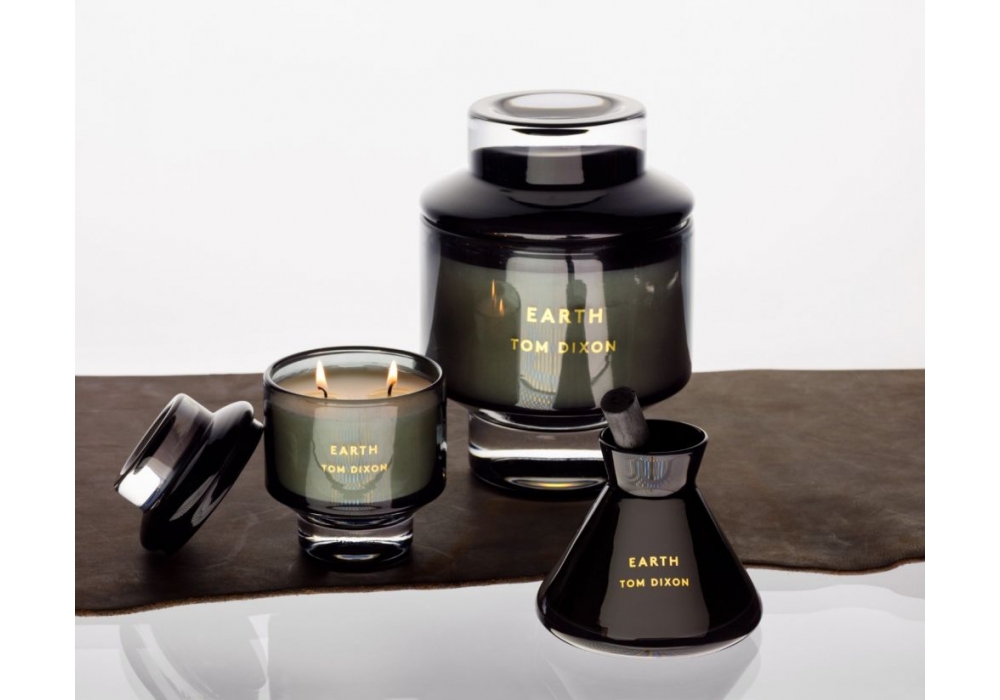 Elements Earth von Tom Dixon entworfen, ist ein Diffusor aus schwarzem Glas mit einem intensiven und moschusartigen Duft.