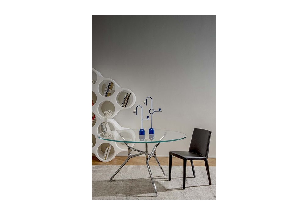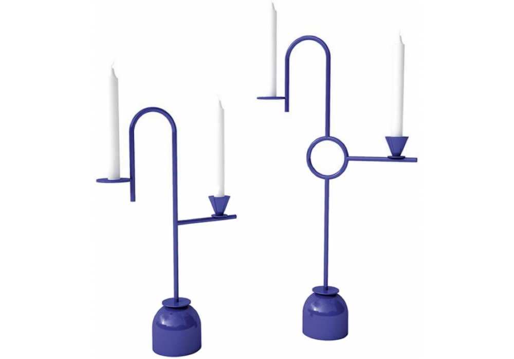 Blue Candleholders von Thomas Dariel für Cappellini entworfen, ist ein Kerzenständer aus gebogenem Stab und Blech, mit Metallfuß, indigoblauer Oberfläche.