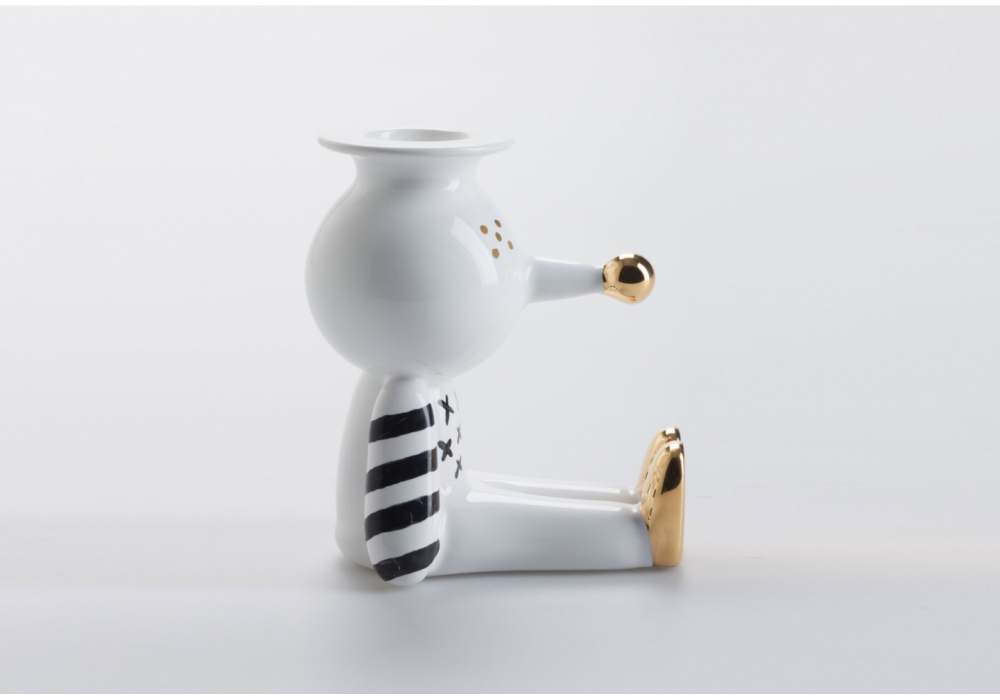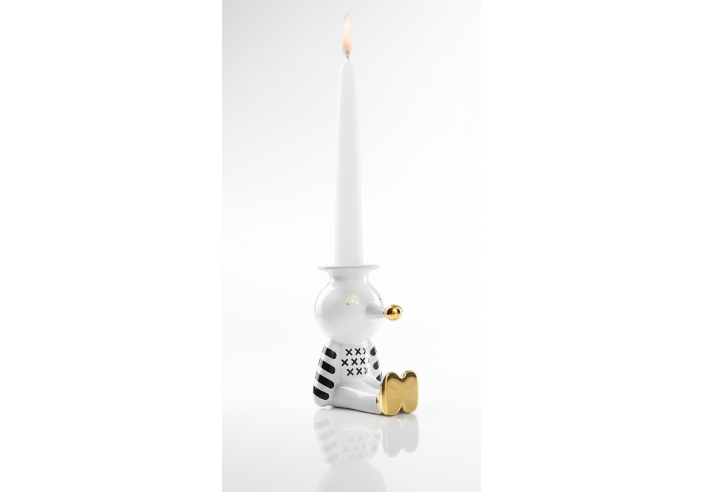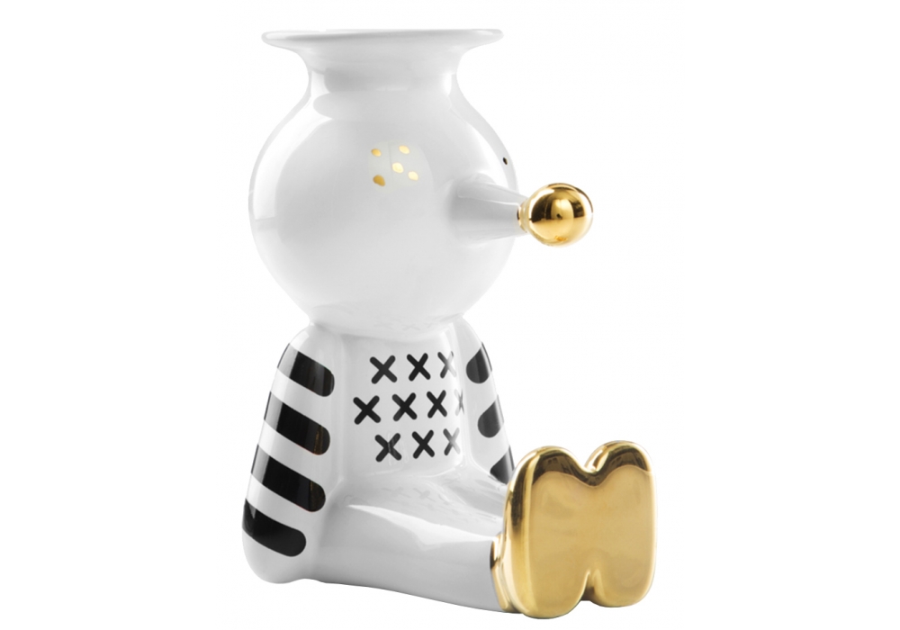 Pinocchietto, von Jaime Hayon für Bosa entworfen, ist ein Kerzenständer in weißer Keramik mit handgefertigter Dekoration in glänzendem Schwarz und Gold, die das Bild der kleinen Marionette zaubert. Pinocchietto ist ein ironisches Ornament für das Haus und ein amüsantes Alltagsobjekt.