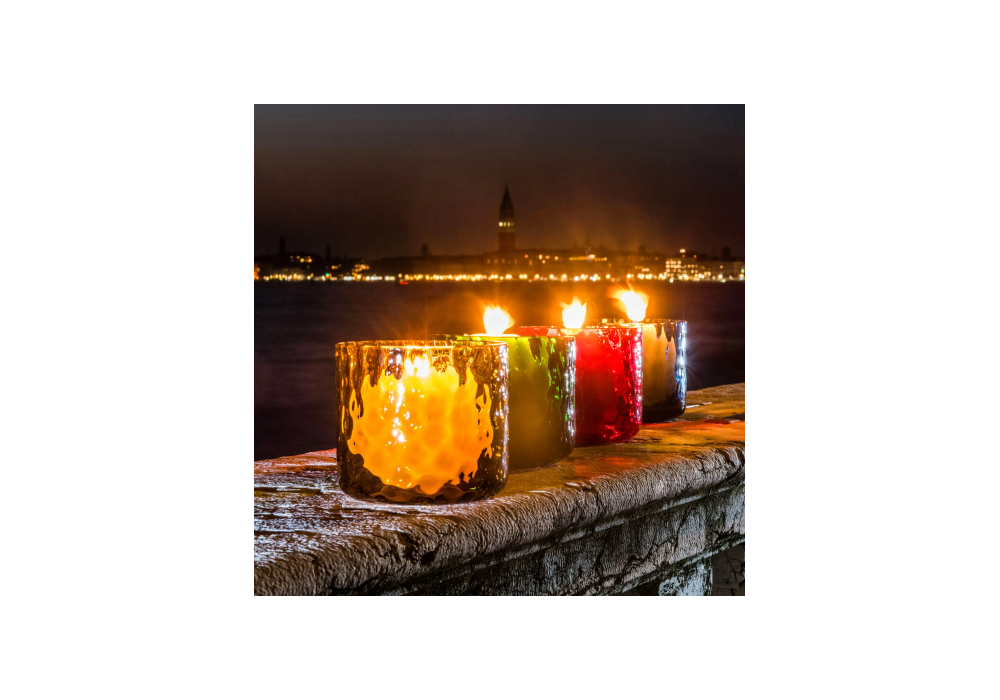 Night in Venice von Venini entworfen und hergestellt, ist ein mundgeblasener Glaskerzenhalter. Kerze enthalten.
