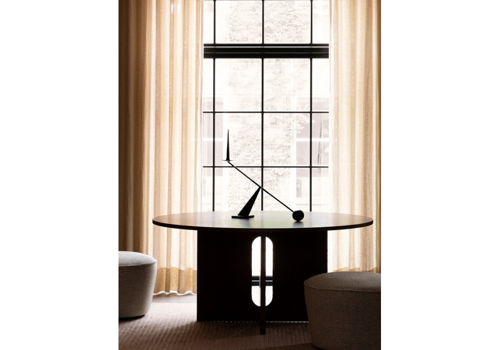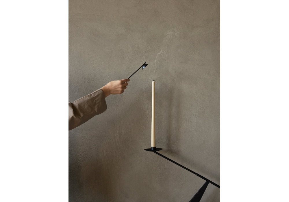Interconnect von Colin King Studio für Audo Copenhagen entworfen, ist ein Kerzenhalter aus schwarz pulverbeschichtetem Stahl oder aus poliertem Messing.