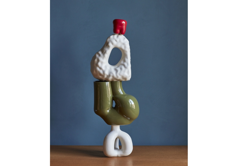 W&S von Wang & Söderström für Hay entworfen, ist ein Kerzenständer aus Steingut. Die 3D-Modelle werden im Studio der Designer entwickelt, dann in einer Keramikfabrik 3D-gedruckt und in Steinzeug modelliert. Verfügbar in verschiedenen Modellen.