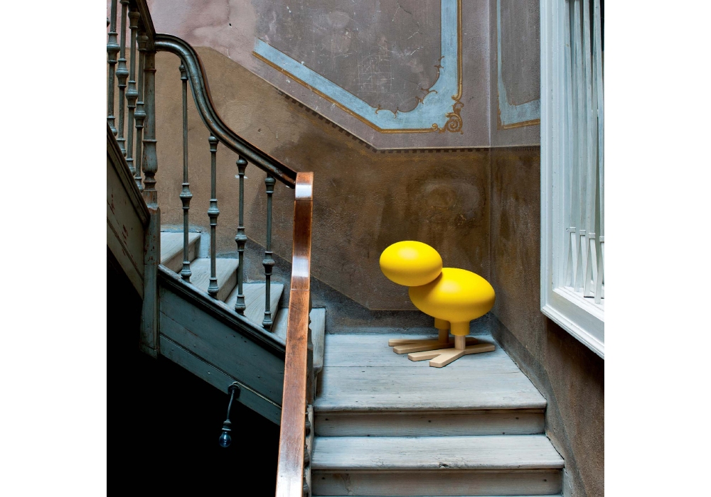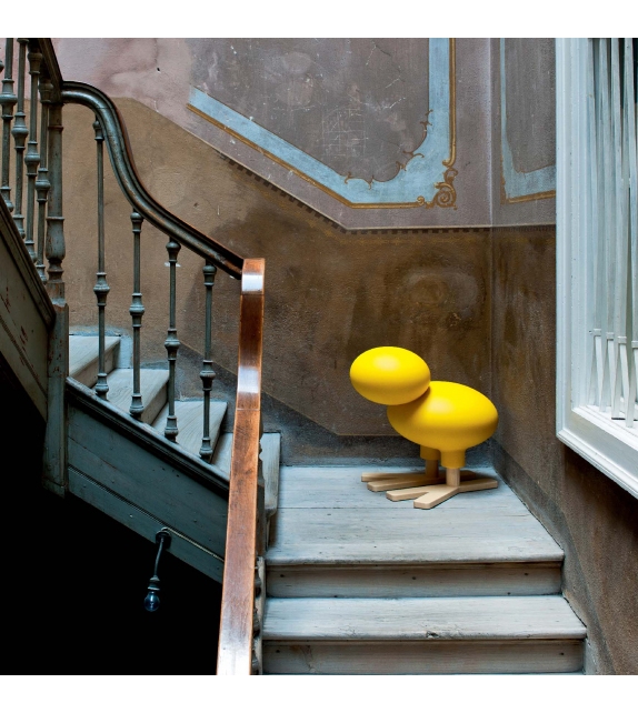 Happy Bird von Eero Aarnio für Magis Me Too entworfen, ist ein abstrakter Vogel aus Polyethylen. Beine aus massiver Naturasche. Erhältlich in verschiedenen Ausführungen.
