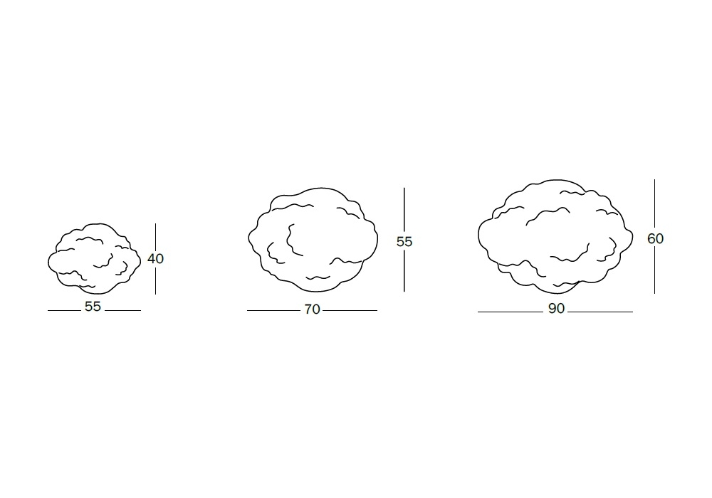 | Abmessungen | 55 x 30 x H 40 cm; 70 x 35 x H 55 cm; 90 x 45 x H 60 cm. |