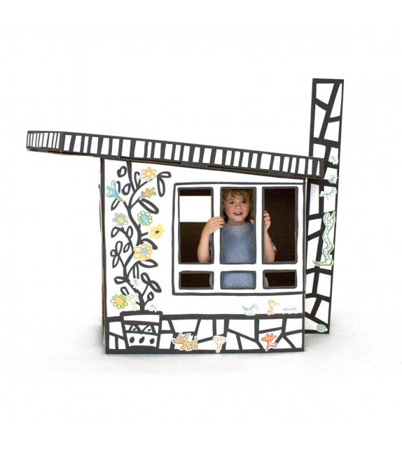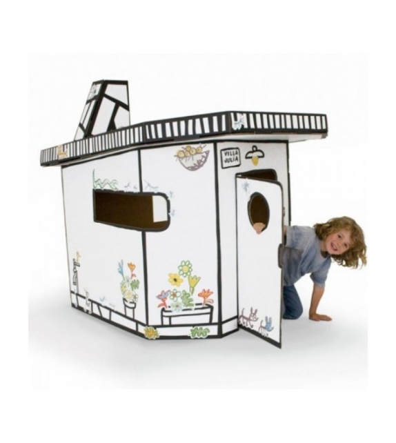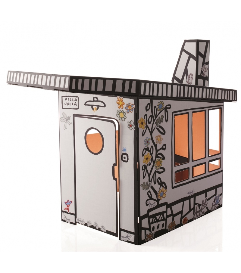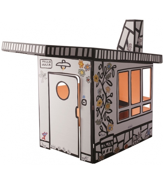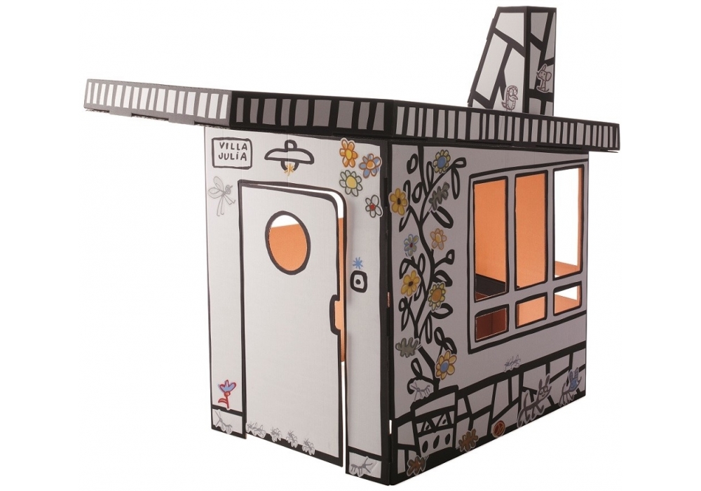 Villa Julia von Javier Mariscal für Magis Me Too entworfen, ist ein Papphaus mit Aufklebern zur Personalisierung.