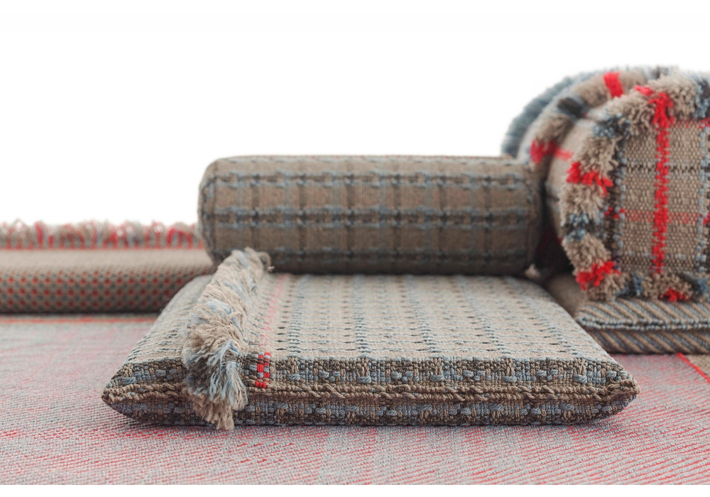 Garden Layers von Patricia Urquiola für Gan entworfen, ist ein zylindrisches Kissen mit einer Beschichtung aus 100 % recyceltem PET. 100 % trockenfester Schaumgummi. Verfügbar in verschiedenen Ausführungen.
