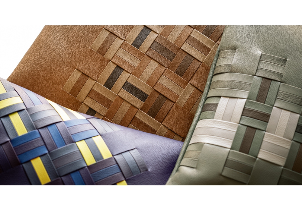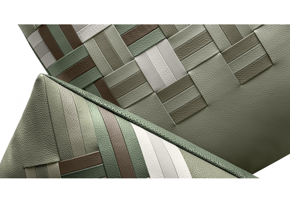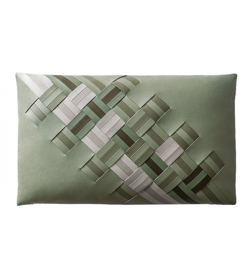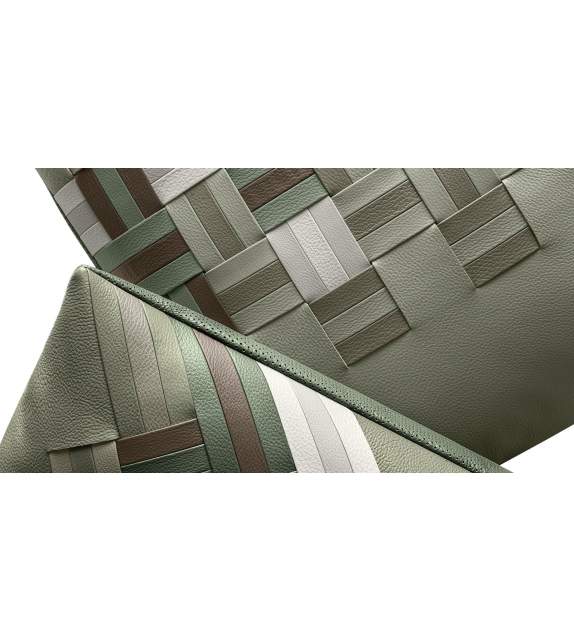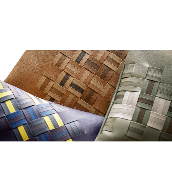 Die dekorativen Kissen - Reise von Giulio Ridolfo und Chiara Novello für Poltrona Frau. Die Kissen sind mit Pelle Frau® ColorSphere® Leder gepolstert, das durch handgewebte Bänder gekennzeichnet ist. Sie sind in 3 Farbkombinationen erhältlich: