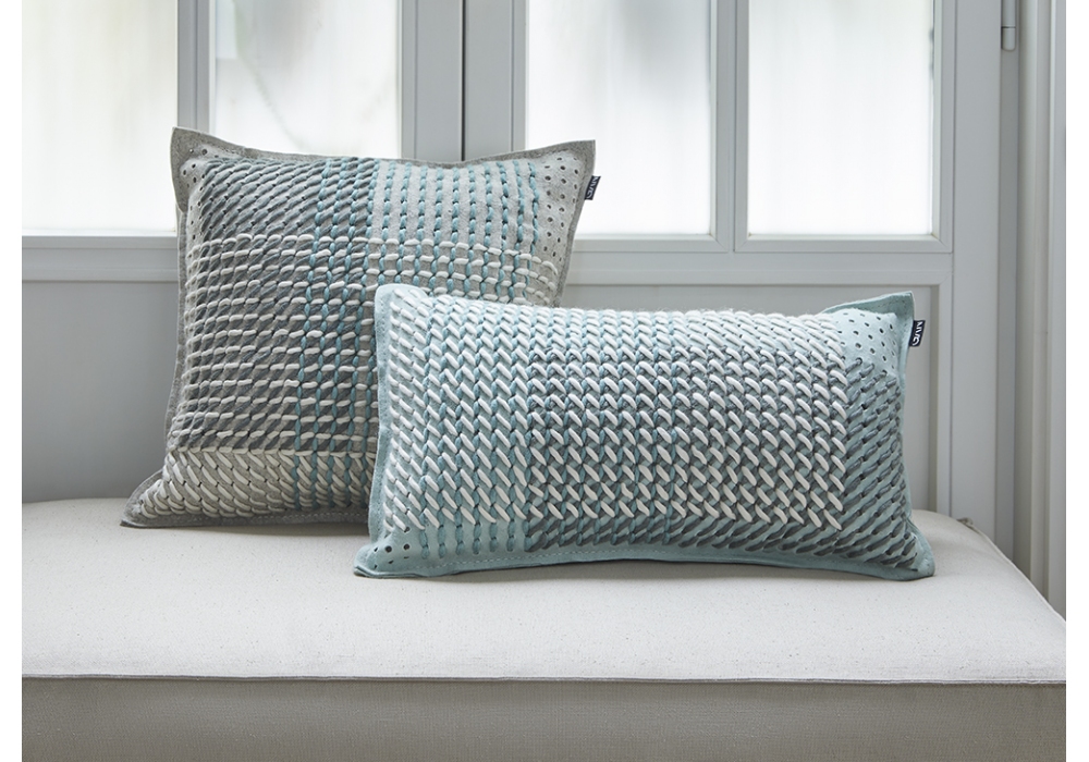 Canevas Geo von Charlotte Lancelot für Gan entworfen, ist ein Kissen, das in zwei Größen und verschiedenen Ausführungen erhältlich ist.
