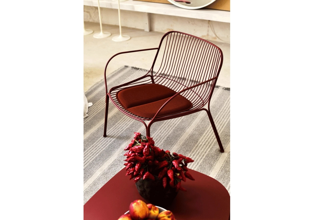 Hiray von Ludovica & Roberto Palomba für Kartell entworfen, ist ein Kissen aus thermogeformtem Polyurethan, das mit einem Stoff bezogen ist, der wasserabweisendes, lasergeschnittenes Recyclingmaterial enthält, wobei die Unterseite mit einem rutschfesten Gummieffekt beschichtet ist. Verfügbar in mehreren Ausführungen.