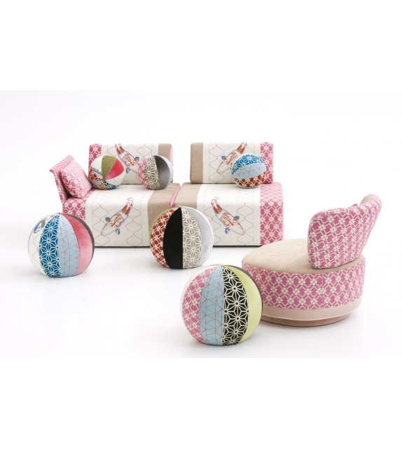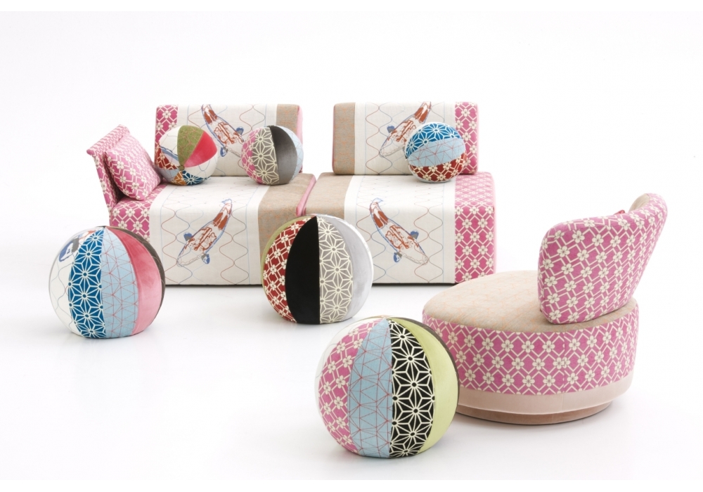 Joy is the cushion designed by Edward Van Vliet for Moroso. Sushi, Karkaoma, Juju, Donut, Joy, damask embroidery, oriental symbolism, floral patterns and digital grids: a collection which finds its identity in the abundance of layering. There is an accumulation of different inputs and stimuli, a manic flow which goes from architectural forms to various images from folklore.