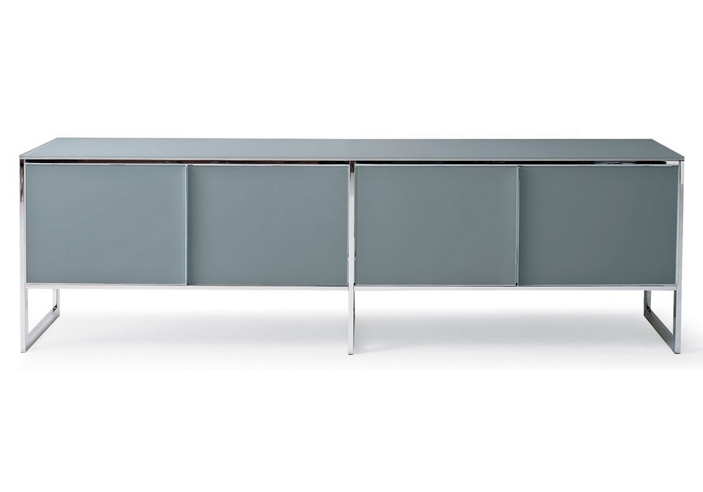 Erminia von Pierangelo Gallotti für Gallotti&Radice entworfen, ist ein Sideboard mit vorgespannt Glas 6mm nach Musterkarte lackiert umkleidet. Lackierung jeweils hochglanz oder matt satiniert. Träger Edelstahl (Inox) poliert oder gebürstet. Auf Wunsch Träger Metall bruniert. Verfügbar auch Innenglasboden Extralight vorgespannt 10mm.